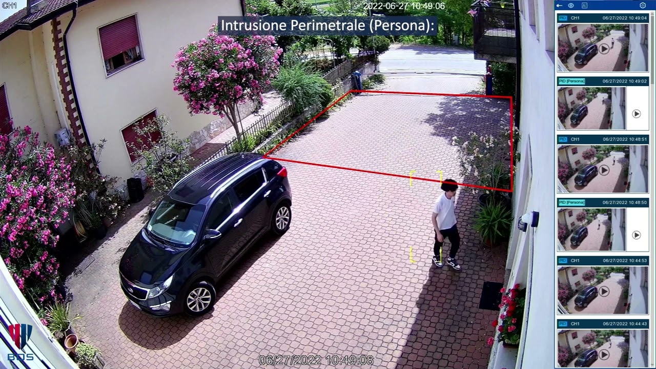 La funzione di intrusione perimetrale rileva la presenza di persone, veicoli o altri “elementi” che si avvicinano, entrano, permangono in un’area virtuale predefinita.